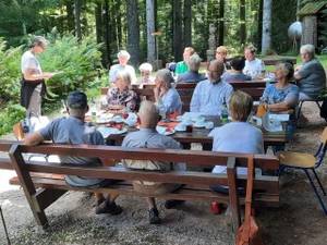 Wie alle 2 Monate fand am Donnerstag, den 11.07.2024, das Begegnungsgscafé statt.Anfangs begrüßten sich alte Bekannte und neue Besucher und suchten sich einen Platz. Anschließend gab Fau Mühlenberg-Knebel den Besuchern ein paar interessante Gedanken zum Thema Wald und Bäume mit. Das gemeinsame Singen war, wie jedes Mal, sehr schön und macht allen viel Spaß.Nach der kleinen Andacht gab es leckeren Kuchen, Wassermelone und Laugengebäck. Die Gäste setzten sich mit einer Tasse Kaffee zusammen und unterhielten sich. Da das Wetter an diesem Tag sehr sonnig und schön war, setzten sich alle zusammen draußen hin und spielten ein Spiel. Geschichten über den Wald wurden natürlich auch erzählt, die sehr interessant waren. Zum Schluss gab es noch ein Rätsel und Sprichwörter, in denen das Thema des Tages vorkam. Es war ein schöner und erlebnisreicher Tag!