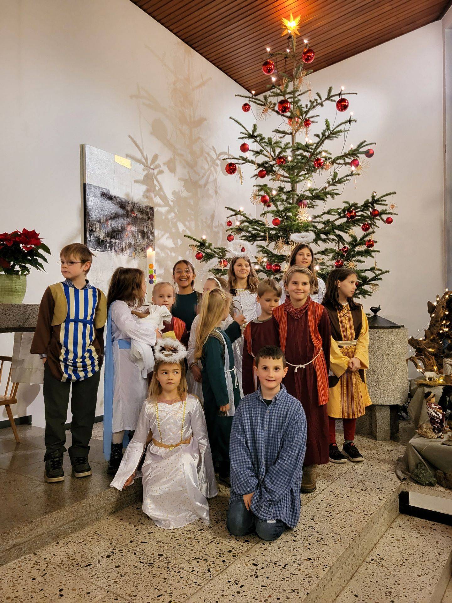 Unterstützung bekamen die Engel - zur Freude der Gottesdienstbesucher - vom Kinderchor der Krippenspielkinder.
