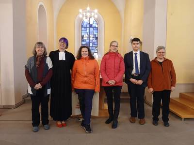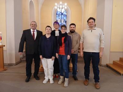 Die neugewählten Ältesten der Kirchengemeinde Lichtenau-Rheinmünster mit Prädikantin Nicole Faller bei ihrer Gottesdiensteinführung v.l.n.r.: Uschi Pip, Tanja Fritz, Ulrike Riedinger, Florian Lutze, Nina Krüner